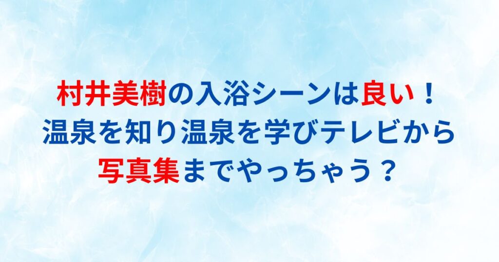 村井美樹の入浴シーンは良い!温泉を知り温泉を学びテレビから写真集までやっちゃう?