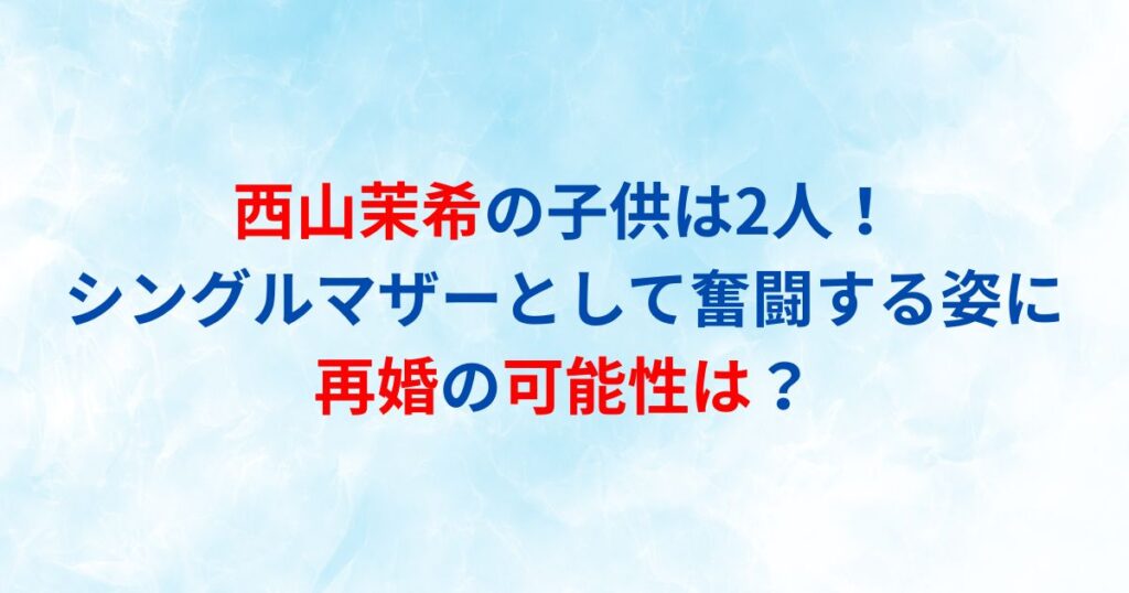 西山茉希さんといえば、モデルやタレントとして活躍する一方で、2人の子供を育てるシングルマザーとしても注目を集めています。 離婚後も元夫との良好な関係を保ちながら、仕事と育児の両立に奮闘する姿が多くの人々の共感を呼んでいます。 今回は、西山茉... -