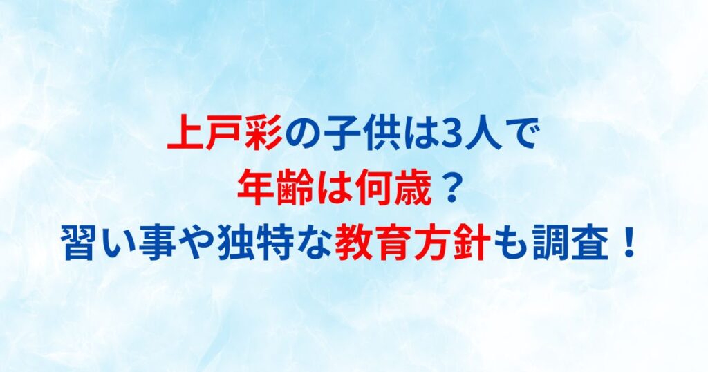 女優の上戸彩さんが3人の子供を育てているという話題が注目を集めています。 EXILEのHIROさんと結婚し、現在は3児の母として活躍する上戸彩さん。 子供たちの年齢や性別、さらには習い事や教育方針について気になる方も多いのではないでしょうか? そこで...