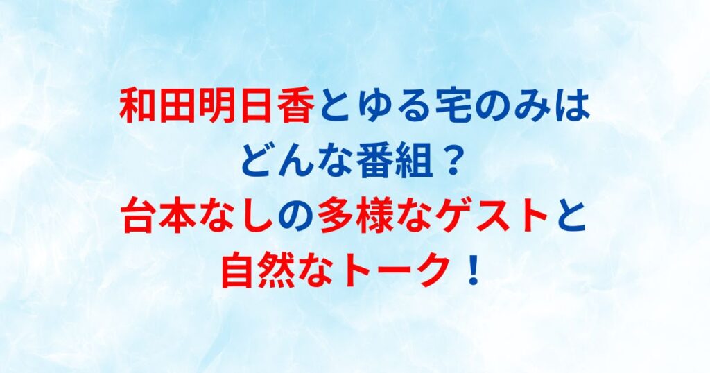 和田明日香とゆる宅のみはどんな番組?台本なしの多様なゲストと自然なトーク!