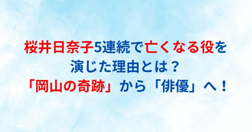 桜井日奈子5連続で亡くなる役を演じた理由とは?「岡山の奇跡」から「俳優」へ!