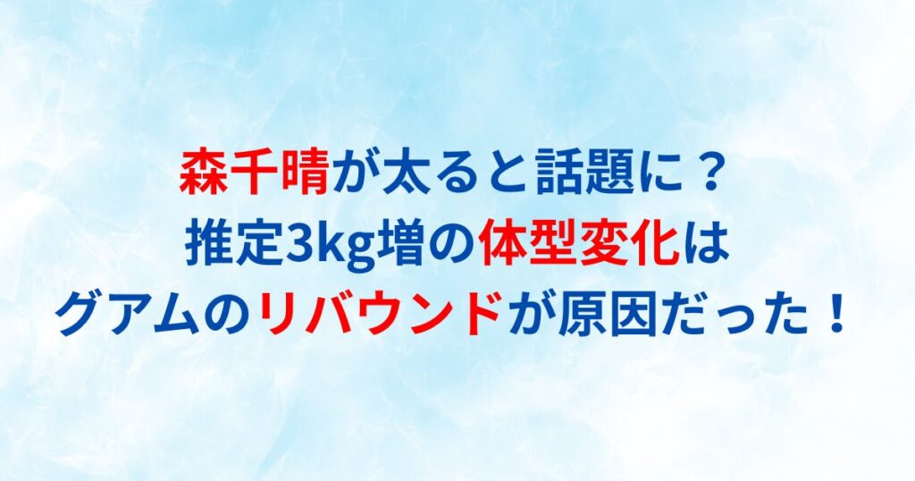 森千晴が太ると話題に?推定3kg増の体型変化はグアムのリバウンドが原因だった!