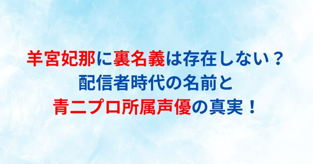 羊宮妃那に裏名義は存在しない?配信者時代の名前と青二プロ所属声優の真実!