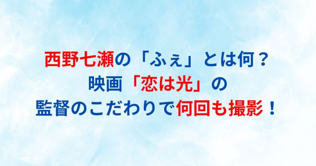 西野七瀬の「ふぇ」とは何?映画「恋は光」の監督のこだわりで何回も撮影!