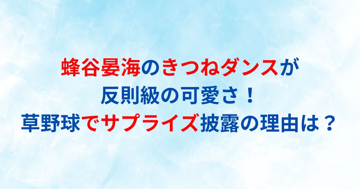 今回は、蜂谷晏海さんが草野球番組できつねダンスをサプライズ披露した理由や、その反応についてお伝えしました。