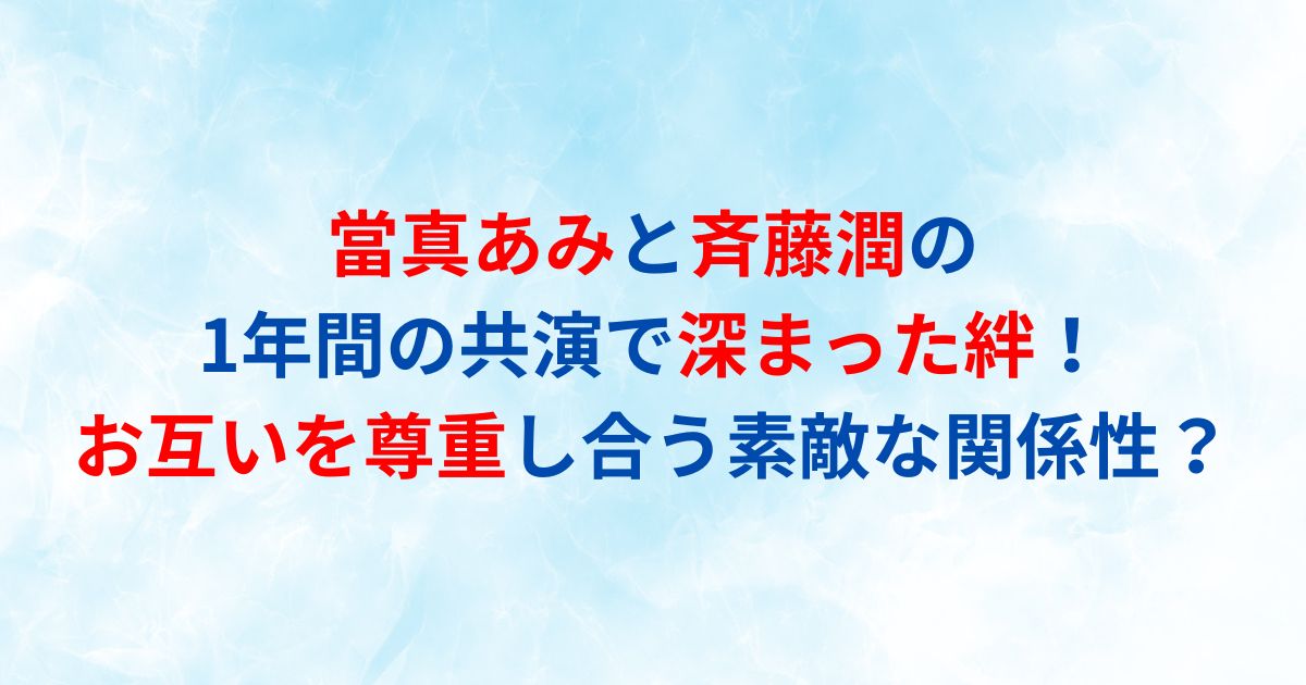 當真あみさんと斉藤潤さんの1年間の共演を通じて深まった絆と、お互いを尊重し合う素敵な関係性についてお伝えしました。