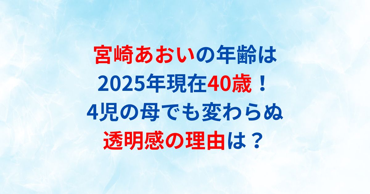 この記事では、宮崎あおいさんの年齢や経歴、家族構成、そして年齢を感じさせない美しさの秘訣について詳しくお伝えします。