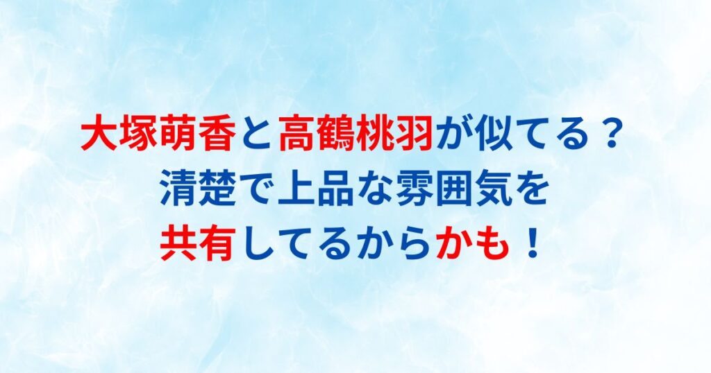 大塚萌香さんと高鶴桃羽さん、この二人の名前を聞いたことがありますか? 最近、芸能界で注目を集めているこの二人。 「なんだか似てる!」という声をよく耳にします。 でも、本当に似ているのでしょうか? そして、なぜ似ていると言われるのでしょうか? ... -