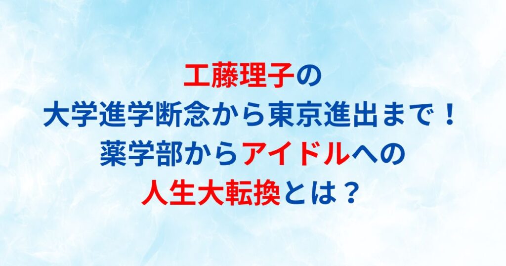 工藤理子の大学進学断念から東京進出まで!薬学部からアイドルへの人生大転換とは?