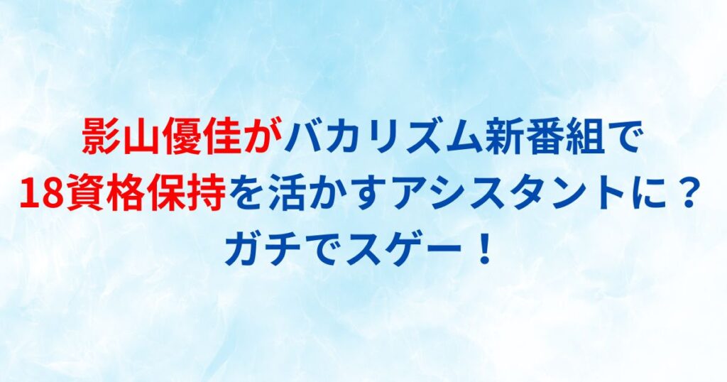 影山優佳がバカリズム新番組で18資格保持を活かすアシスタントに?ガチでスゲー!