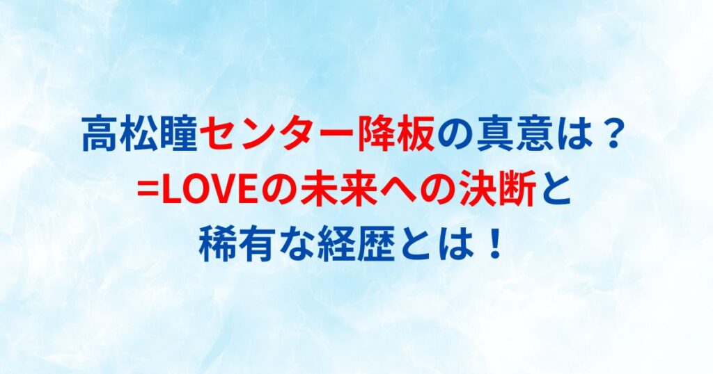 高松瞳センター降板の真意は?=LOVEの未来への決断と稀有な経歴とは!