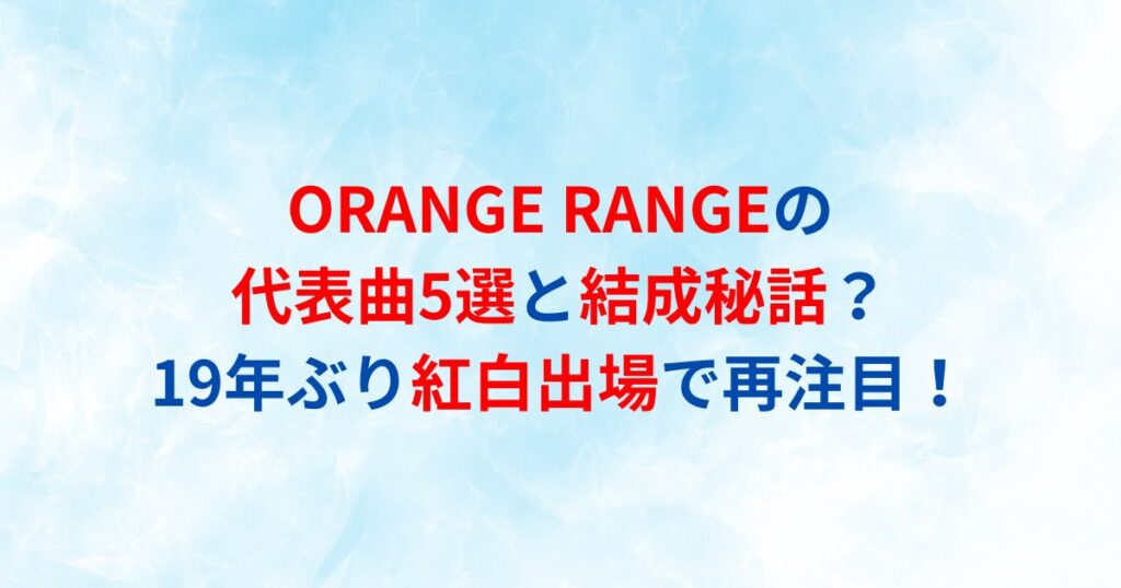 ORANGE RANGEの代表曲5選と結成秘話?19年ぶり紅白出場で再注目!