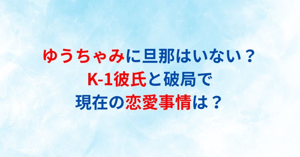 「令和の白ギャル」として人気のゆうちゃみさん。 最近、ゆうちゃみさんの結婚や旦那について気になっている方が多いようです。 実際のところ、ゆうちゃみさんに旦那はいるのでしょうか? この記事では、ゆうちゃみさんの結婚の真相や、K-1ファイターとの... -