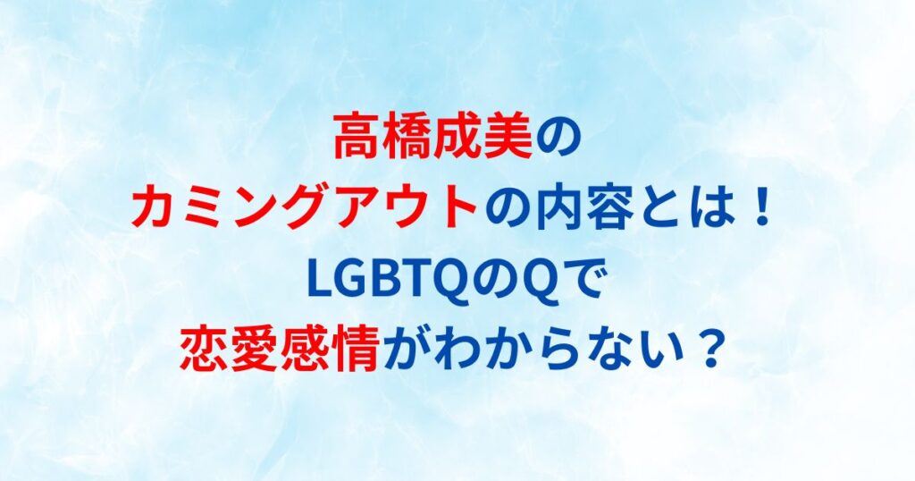 高橋成美のカミングアウトの内容とは!LGBTQのQで恋愛感情がわからない?
