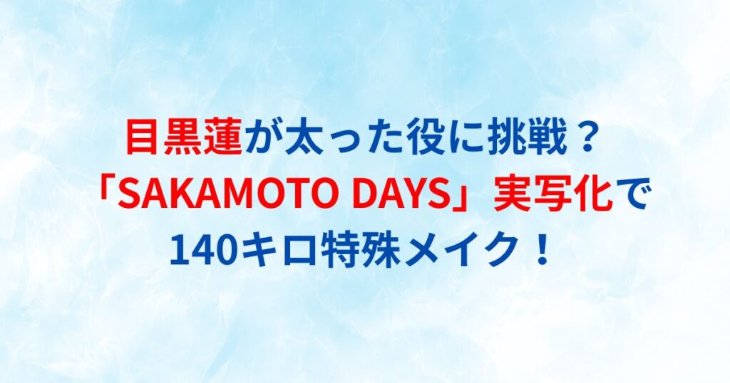 Snow Manのメンバーとして知られる目黒蓮さんが、驚きの変身を遂げる大役に挑戦することが明らかになりました! 人気漫画「SAKAMOTO DAYS」の実写映画化作品で、目黒蓮が主演を務めることが発表されたのです。 この記事では、目黒蓮の太った役への挑戦と、... -