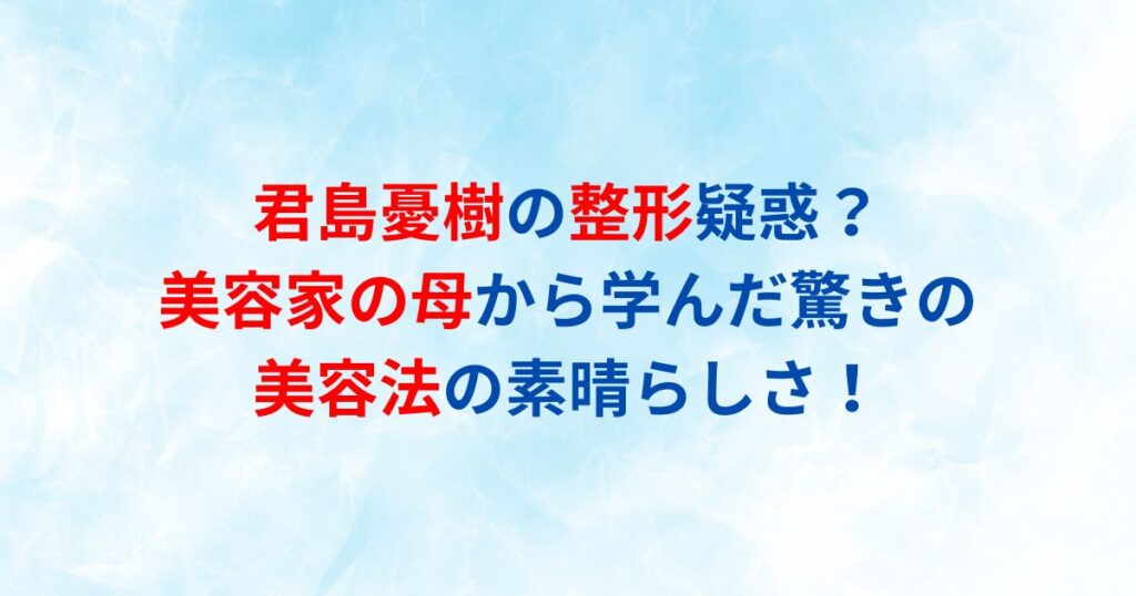 君島憂樹の整形疑惑?美容家の母から学んだ驚きの美容法の素晴らしさ!