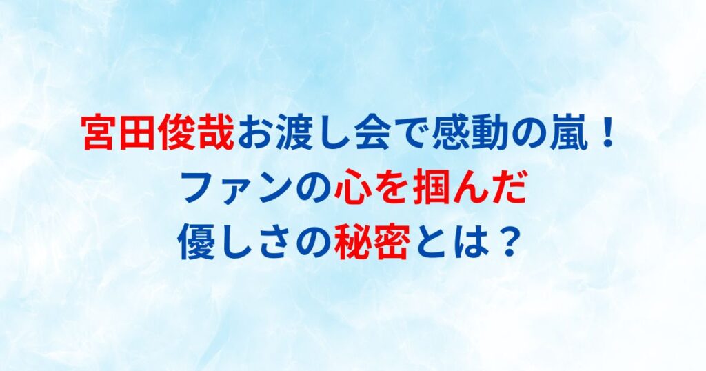 宮田俊哉お渡し会で感動の嵐!ファンの心を掴んだ優しさの秘密とは?
