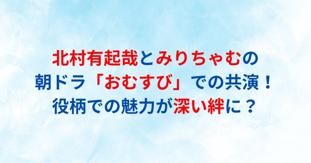 北村有起哉とみりちゃむの朝ドラ「おむすび」での共演!役柄での魅力が深い絆に?