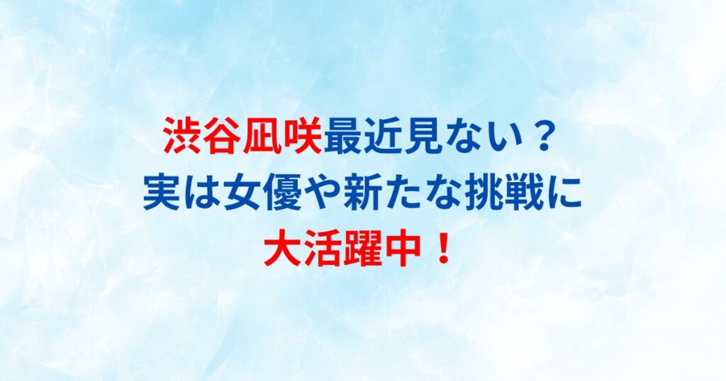 渋谷凪咲最近見ない?実は女優や新たな挑戦に大活躍中!