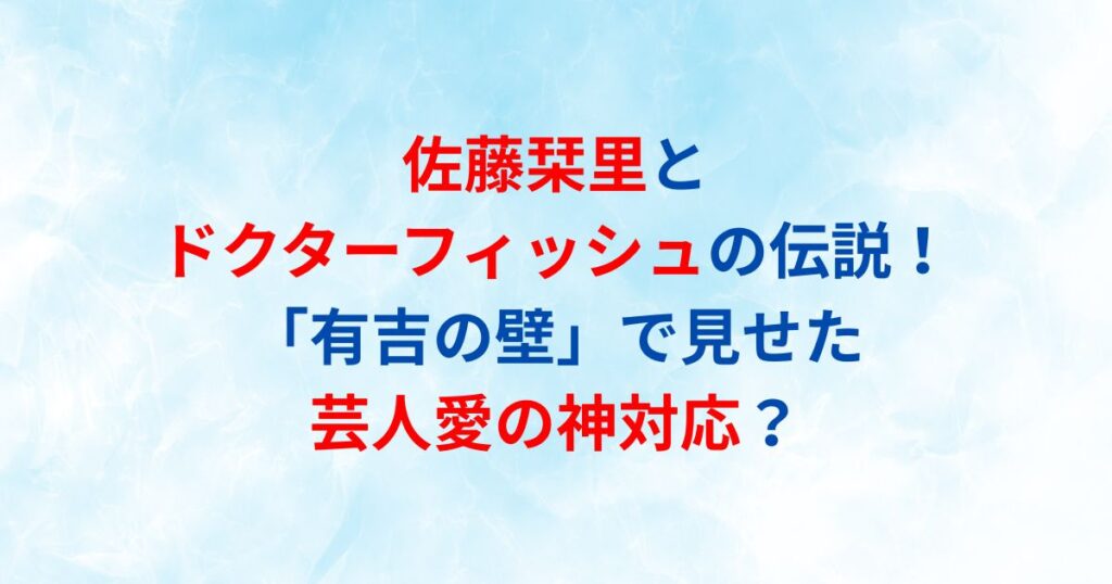 佐藤栞里とドクターフィッシュの伝説!「有吉の壁」で見せた芸人愛の神対応?
