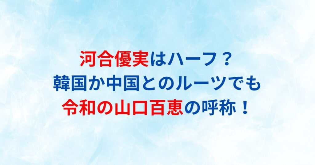 ドラマ「不適切にもほどがある!」での純子役や朝ドラ「あんぱん」での蘭子役で大ブレイク中の河合優実さん。 その圧倒的な演技力と独特の存在感で注目を集める彼女ですが、実はハーフであることを公表しています。 本名は「孫優実」という情報もあり、韓... -