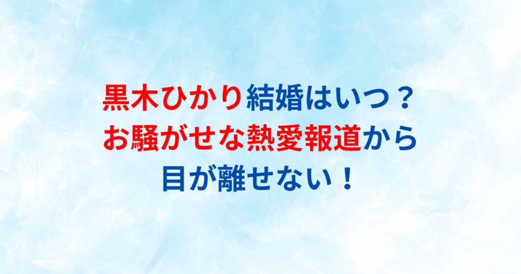 黒木ひかりさんの結婚について、多くのファンが気になっているのではないでしょうか? 今回は、黒木ひかりさんの波乱万丈な人生と最近話題の熱愛報道、そして気になる結婚の可能性について詳しくお伝えします。 黒木ひかりさんの魅力的な人生と恋愛事情に... -