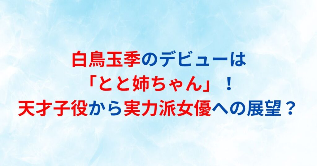 白鳥玉季のデビューは「とと姉ちゃん」!天才子役から実力派女優への展望?