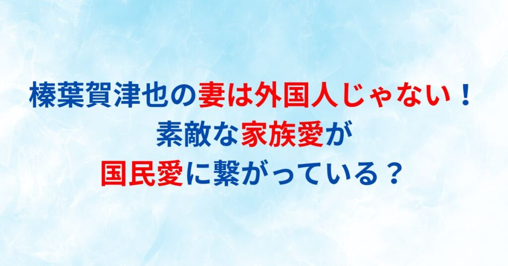 榛葉賀津也の妻は外国人じゃない!素敵な家族愛が国民愛に繋がっている?