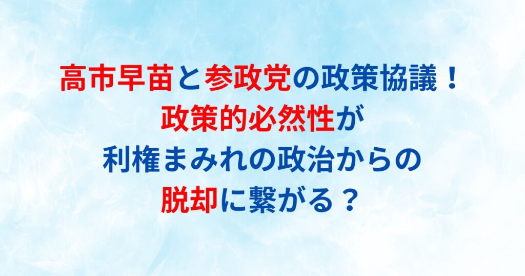 高市早苗と参政党の政策協議!政策的必然性が利権まみれの政治からの脱却に繋がる?