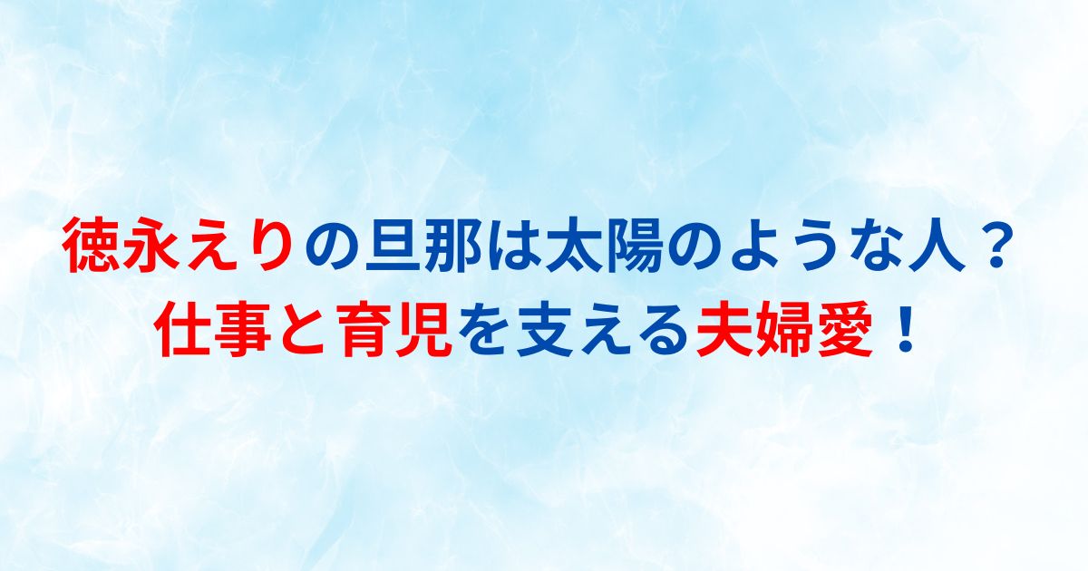 そんな徳永えりさんを支える旦那さんとはどんな人物なのでしょうか?