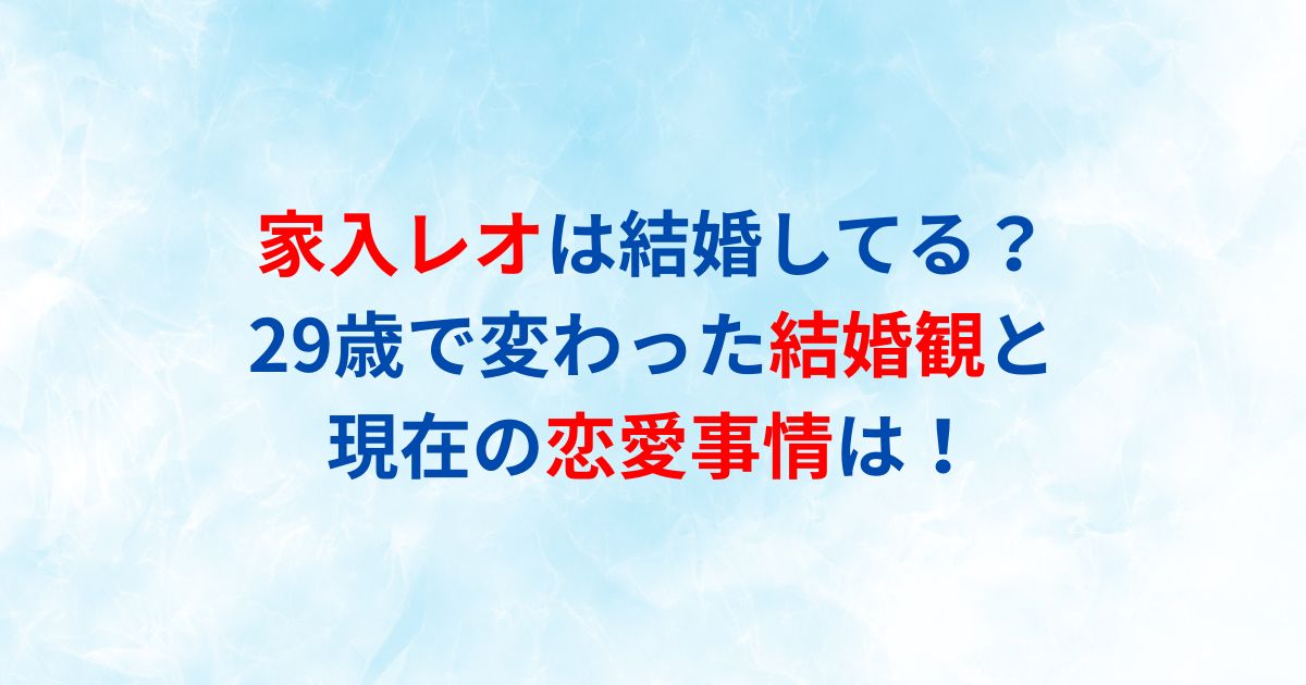 この記事では、家入レオさんの結婚の真相や現在の恋愛観について詳しくお伝えします!