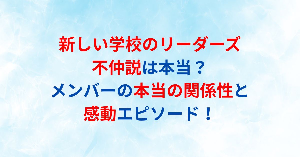 この記事では、新しい学校のリーダーズの不仲説の真相と、メンバー同士の本当の関係性、そして感動的な絆のエピソードをまとめてお届けします。