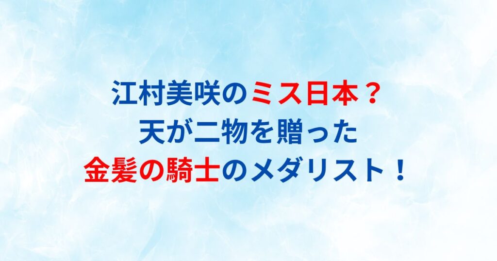 江村美咲のミス日本?天が二物を贈った金髪の騎士のメダリスト!