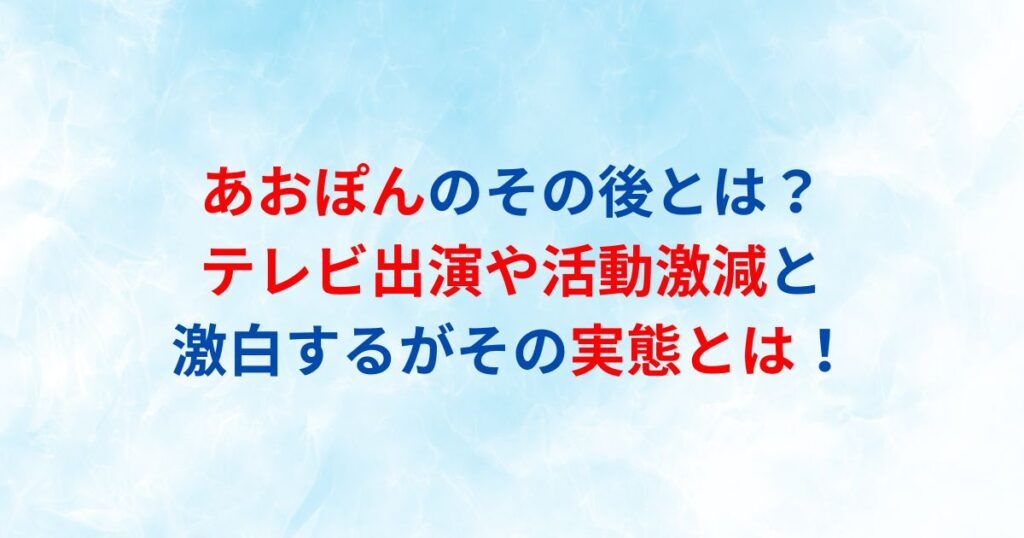 あおぽんのその後とは?テレビ出演や活動激減と激白するがその実態とは!