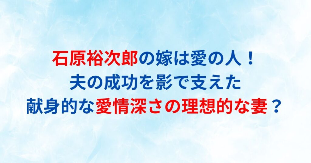石原裕次郎さんといえば、昭和を代表する大スターとして今なお多くの人々に愛され続けています。 そんな石原裕次郎さんの人生を支え、共に歩んだ女性がいます。 それが妻の石原まき子さんです。 今回は、石原裕次郎さんの嫁として知られる石原まき子さんの... -