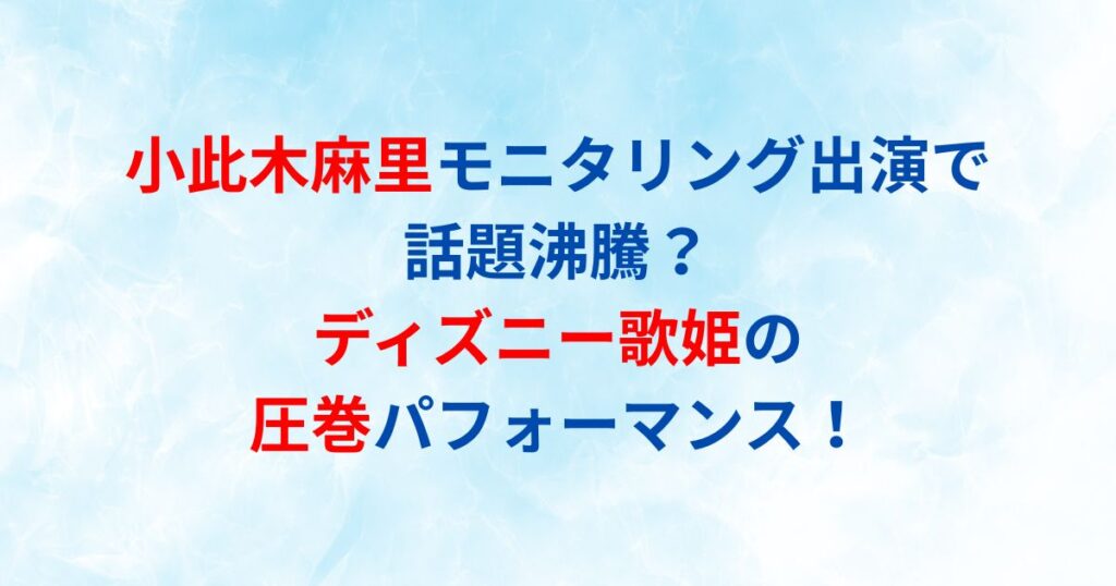 小此木麻里モニタリング出演で話題沸騰?ディズニー歌姫の圧巻パフォーマンス!