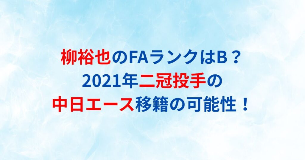 柳裕也のFAランクはB?2021年二冠投手の中日エース移籍の可能性!