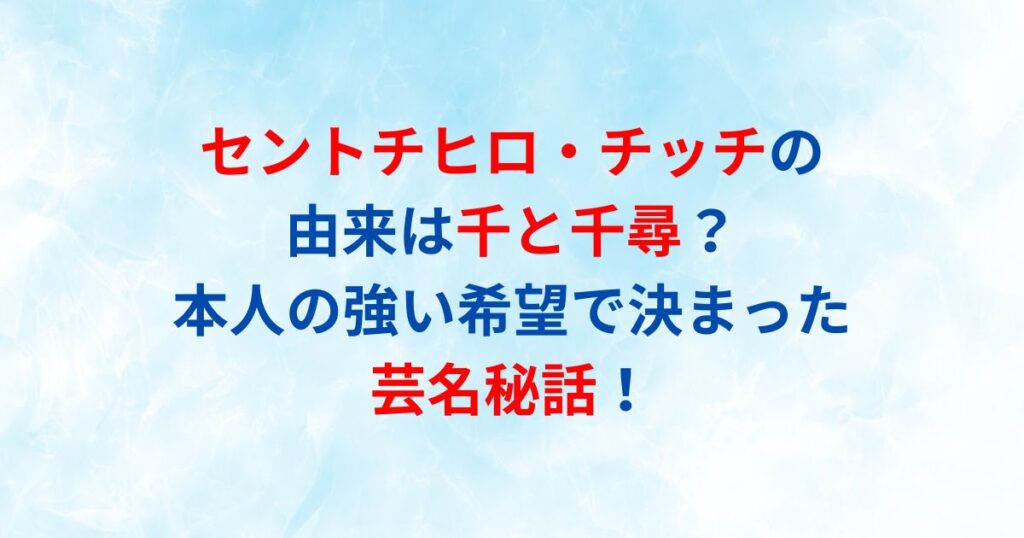 セントチヒロ・チッチの由来は千と千尋?本人の強い希望で決まった芸名秘話!