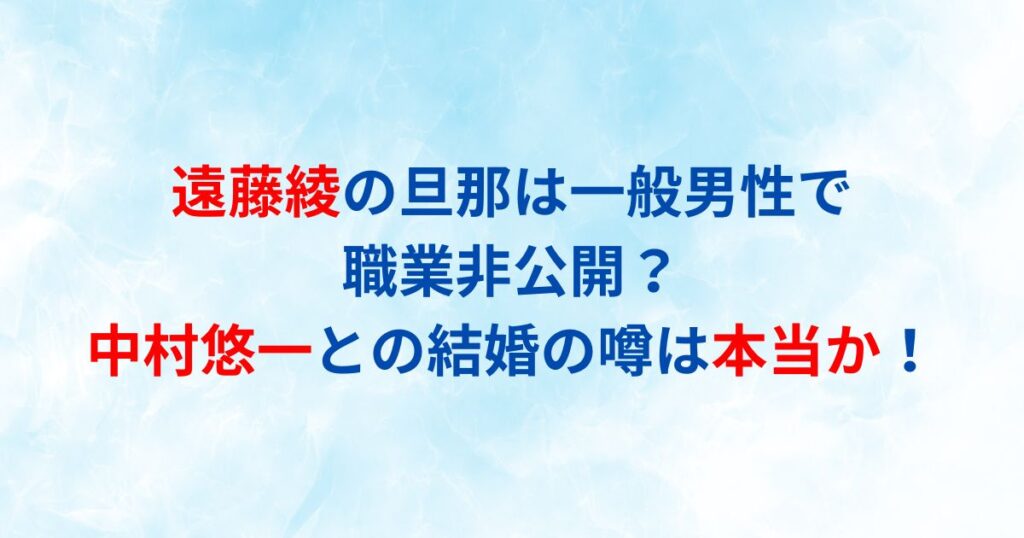 人気声優の遠藤綾さんの旦那様について気になっている方も多いのではないでしょうか? 『マクロスF』のシェリル・ノーム役や『おそ松さん』のトト子役など、数々の人気キャラクターを演じてきた遠藤綾さん。 実は2013年に結婚されているのですが、旦那様の...