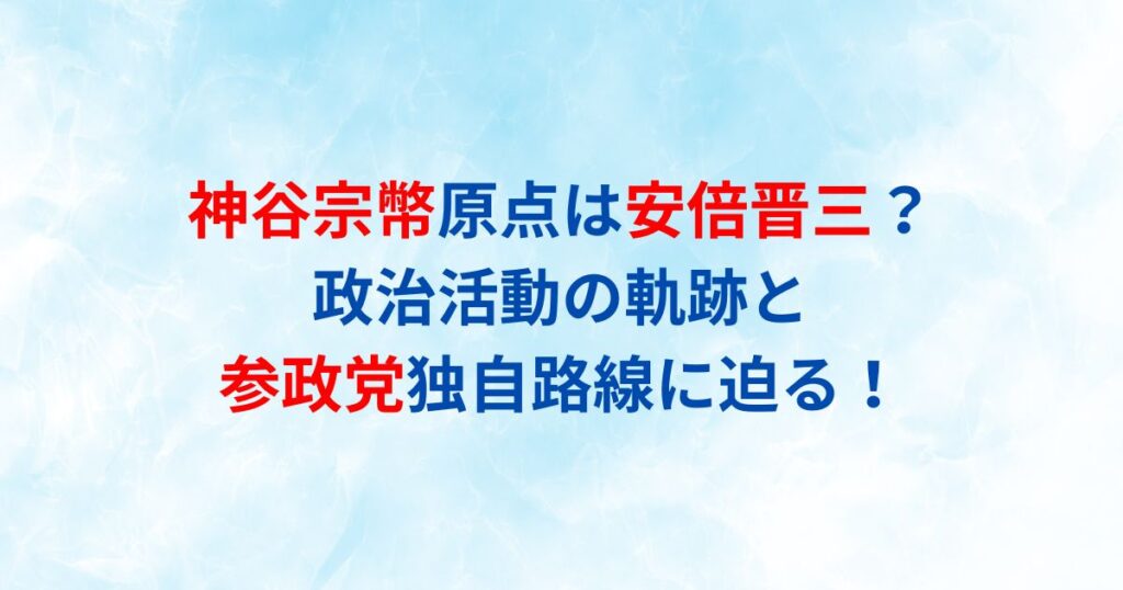 近年、日本の政治シーンで注目を集める参政党。 その代表を務める神谷宗幣氏の政治活動の原点には、安倍晋三元首相の存在があったことをご存知でしょうか? 本記事では、神谷宗幣氏の政治キャリアの軌跡を辿りながら、安倍晋三元首相との関係性や参政党で...