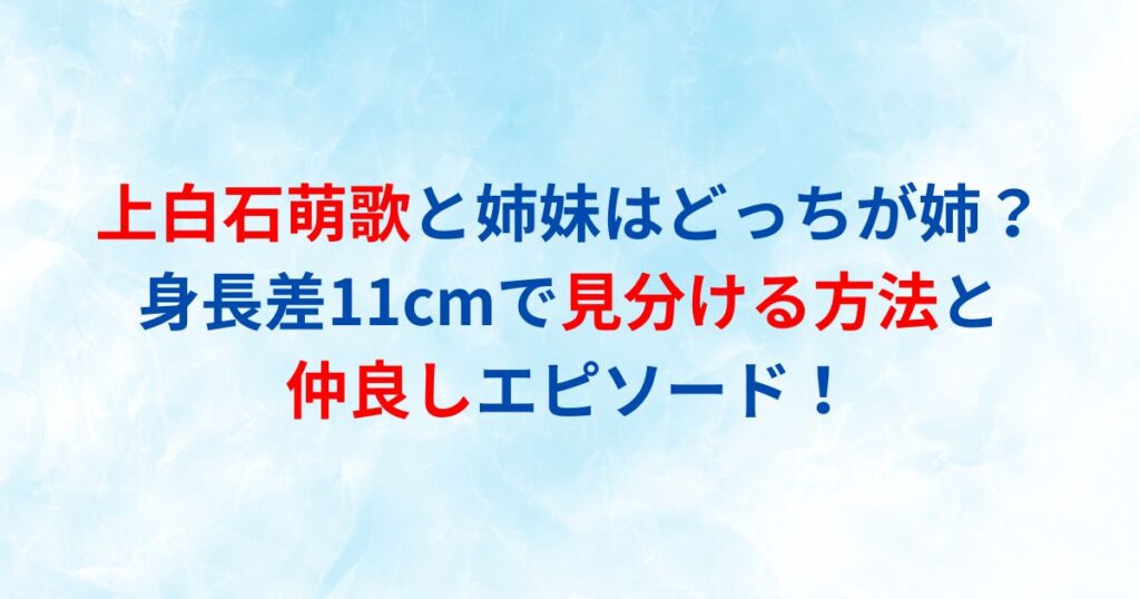 上白石萌歌さんと上白石萌音さんの姉妹について、気になっている方も多いのではないでしょうか。 二人ともテレビや映画で大活躍していて、とても似ているので「どっちが姉?」「どうやって見分けるの?」と疑問に思いますよね。 実は、上白石姉妹には身長... -