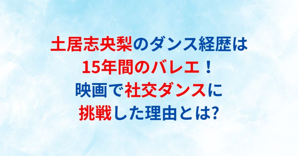 朝ドラ『虎に翼』で注目を集めた土居志央梨さん。 実は彼女には15年間のクラシックバレエ経歴があることをご存知でしょうか? そして2025年、Netflix映画『10DANCE』では社交ダンスに初挑戦しています。 この記事では、土居志央梨さんのダンス経歴と、バレ... -