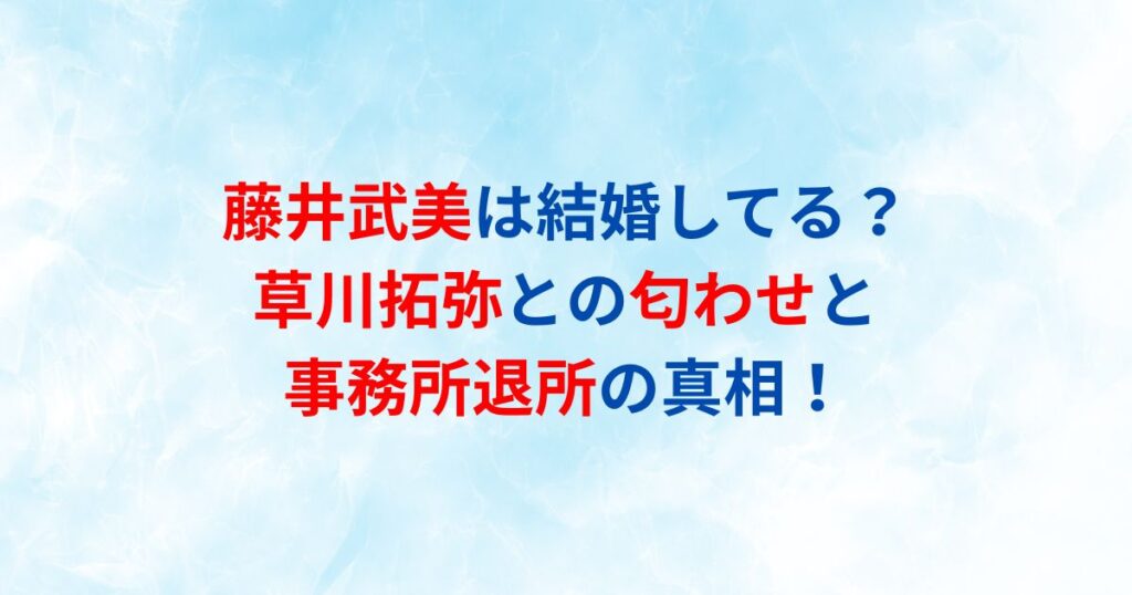 藤井武美は結婚してる?草川拓弥との匂わせと事務所退所の真相!