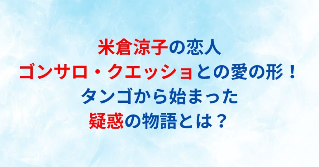 米倉涼子さんと恋人のゴンサロ・クエッショさんの関係が、世間の注目を集めています。 タンゴを通じて出会った二人の愛の物語には、多くの人が興味を持っているようです。 今回は、米倉涼子さんとゴンサロ・クエッショさんの関係について、出会いから現在... -