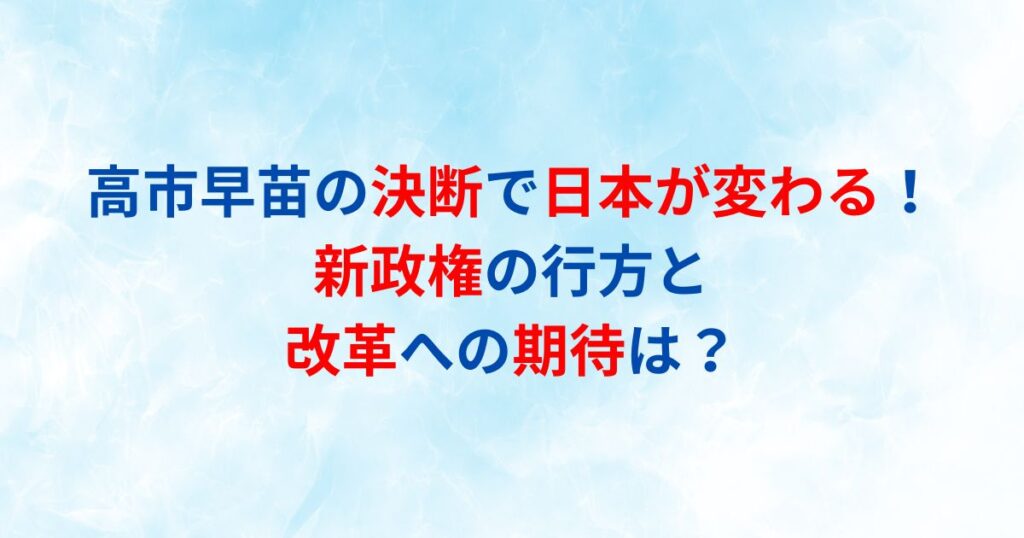 高市早苗の決断で日本が変わる!新政権の行方と改革への期待は?