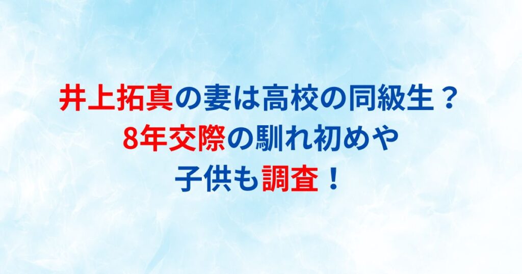 井上拓真の妻は高校の同級生?8年交際の馴れ初めや子供も調査!