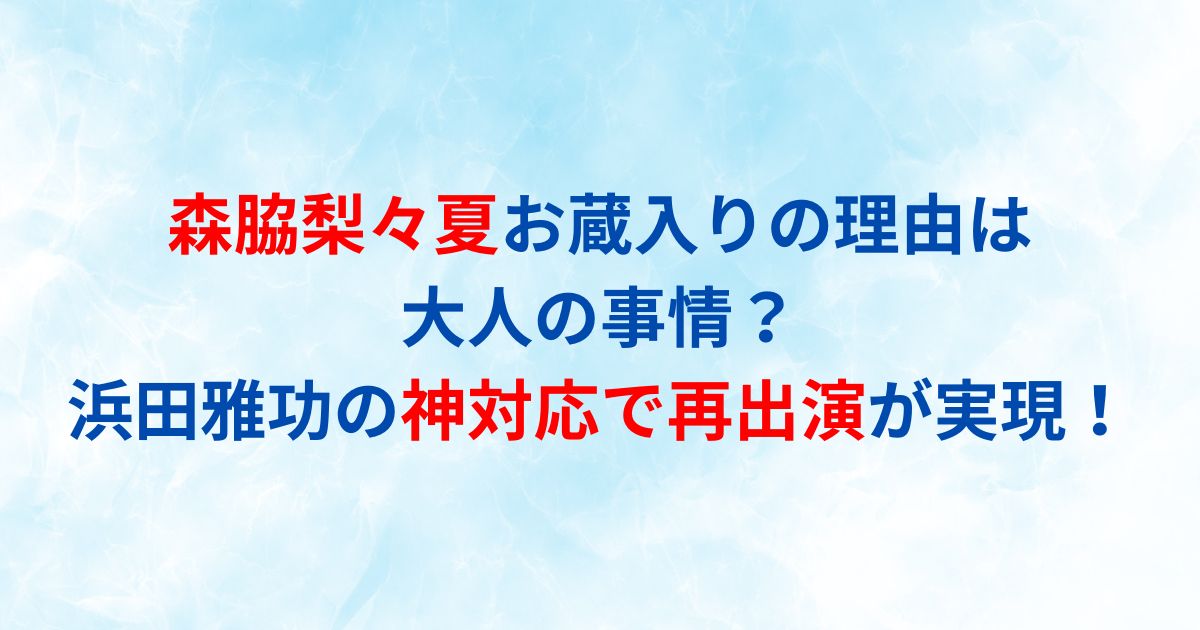 この記事では、森脇梨々夏さんのお蔵入りエピソードの詳細と、彼女がブレイクしたきっかけについて詳しくお伝えします。