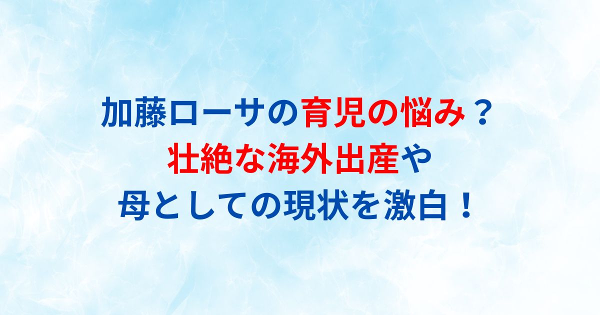 今回は、加藤ローサさんが経験した壮絶な海外出産から、現在の育児の悩みまで、彼女の赤裸々な告白をお届けします。