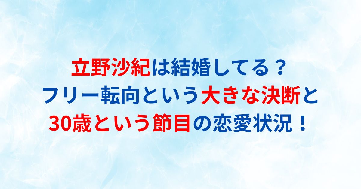 今回は、立野沙紀さんの結婚や恋愛事情、フリー転向の理由について調査しました。