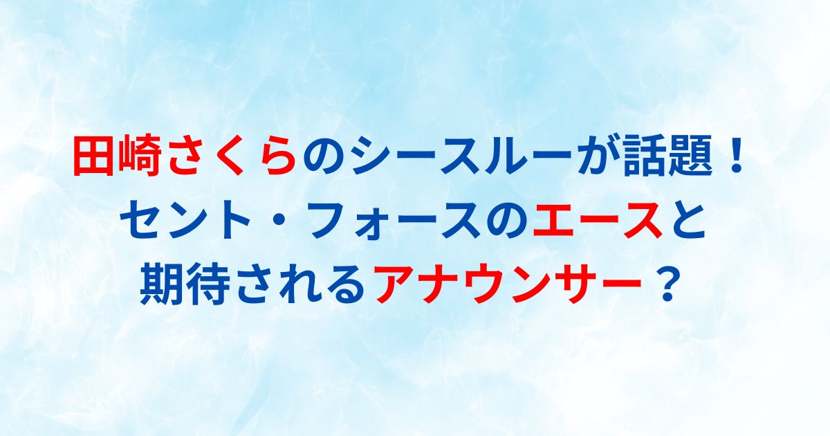 セント・フォース所属の田崎さくらさんといえば、「めざましテレビ」や「ズームイン!!サタデー」などの人気番組で活躍し、多くの視聴者を魅了してきました。
